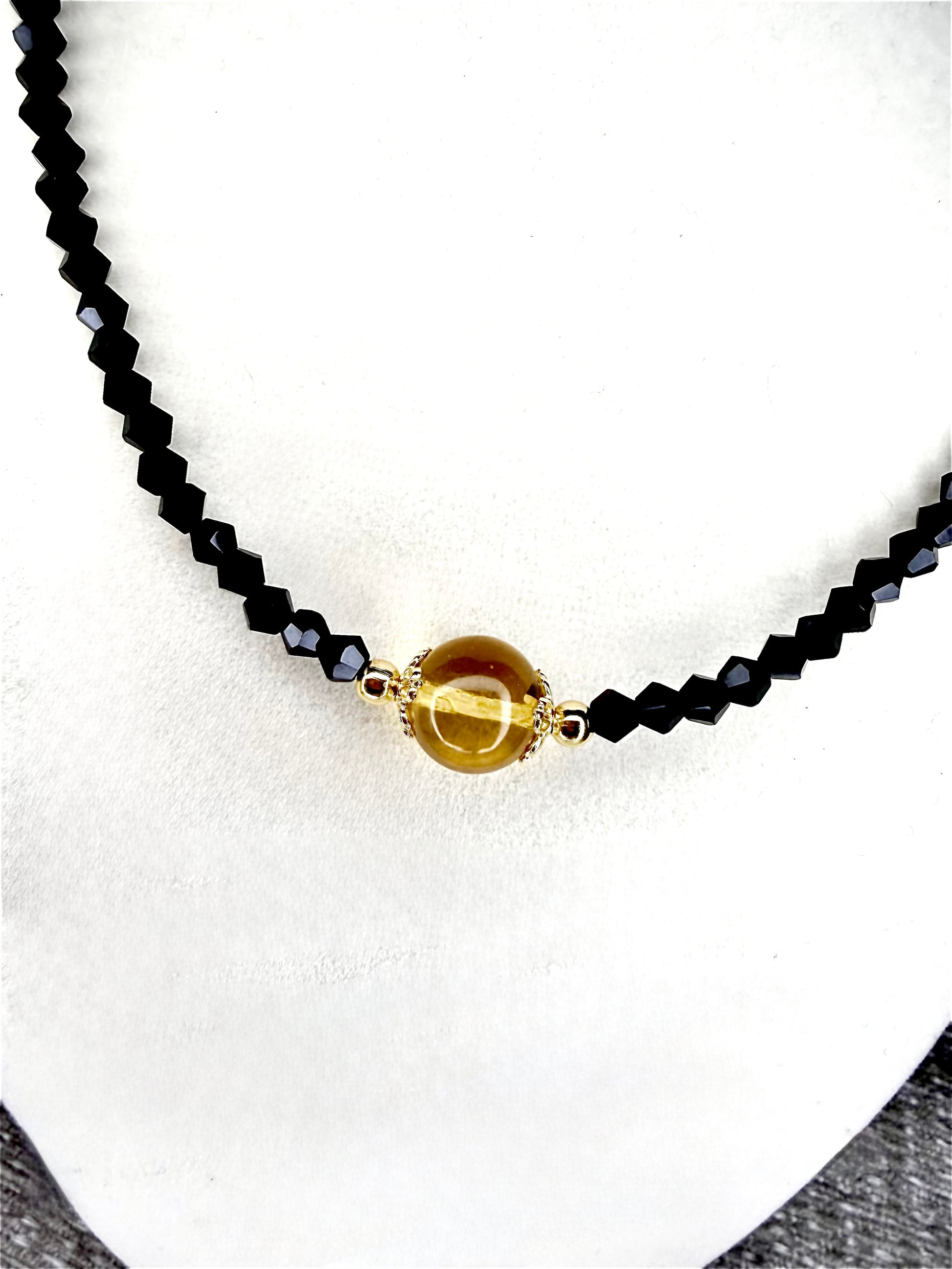 Un contraste entre lo genuino y lo natural, cristales negro con una hermosa esfera de ambar 🖤🧡🖤🧡