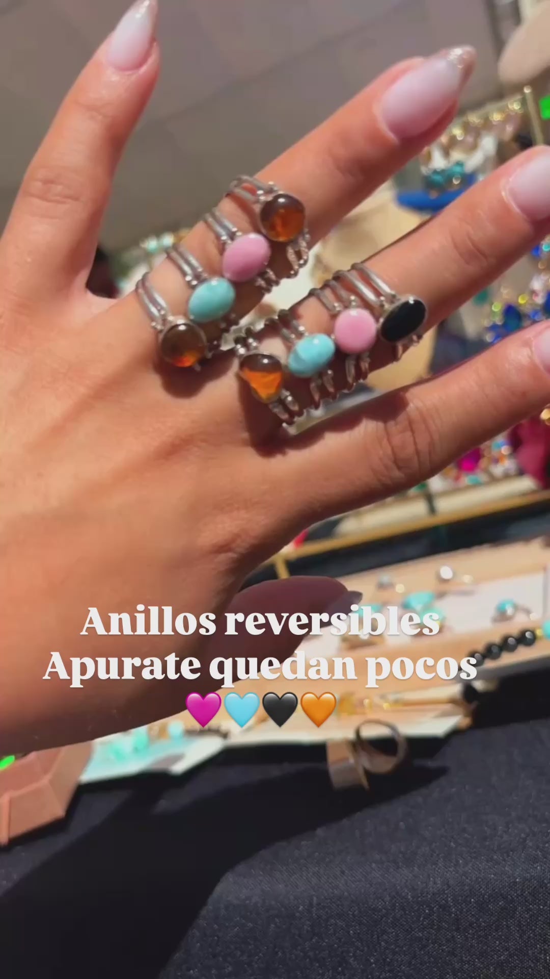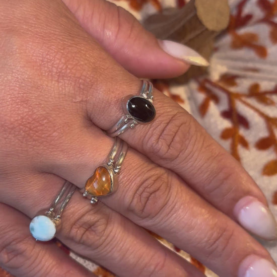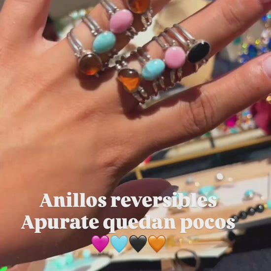 Hermosos anillos reversibles ambar, larimar y black obsidian diferentes sizes