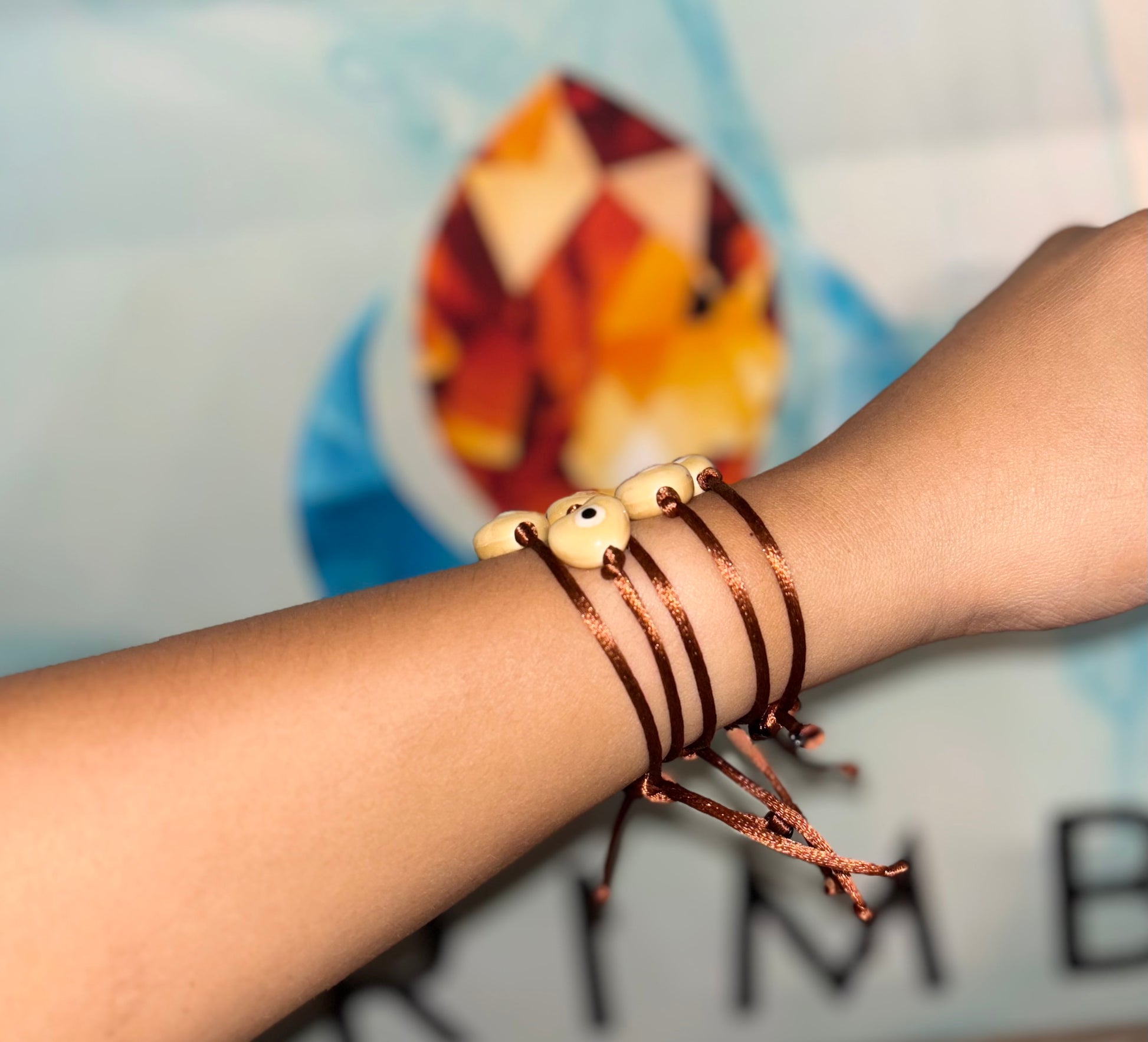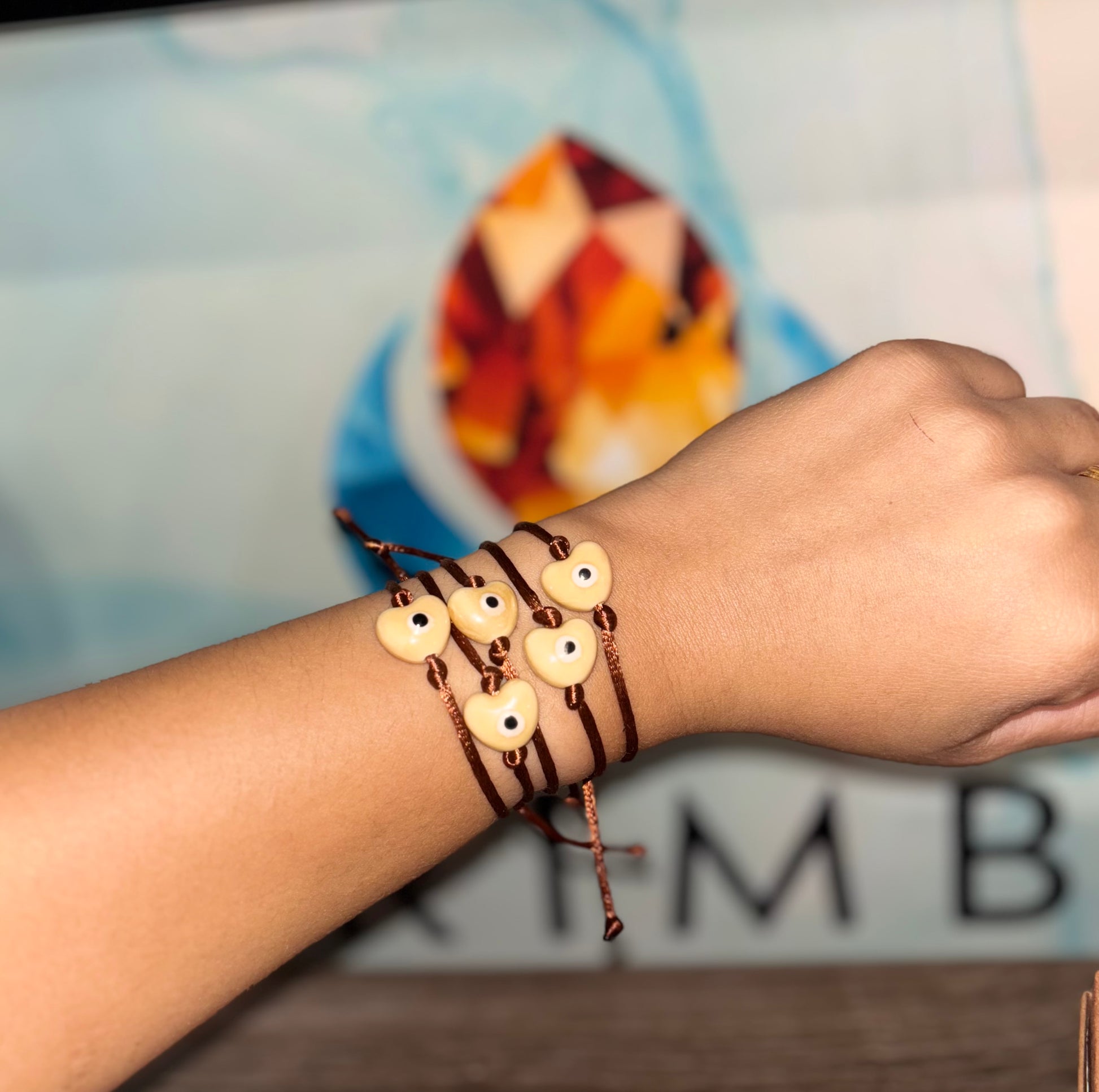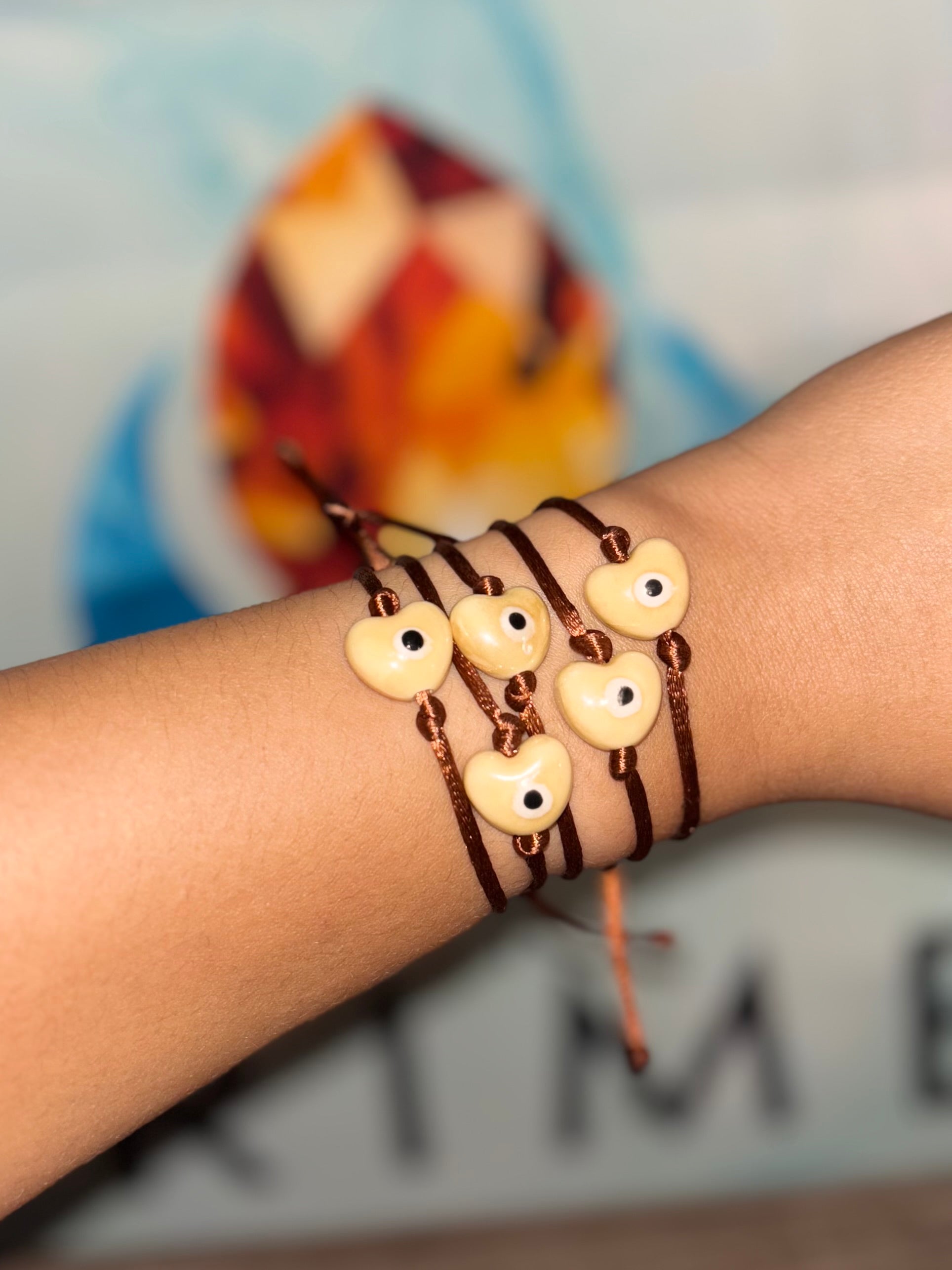 Pulseras de ojitos con hilo marron con dije de ceramica