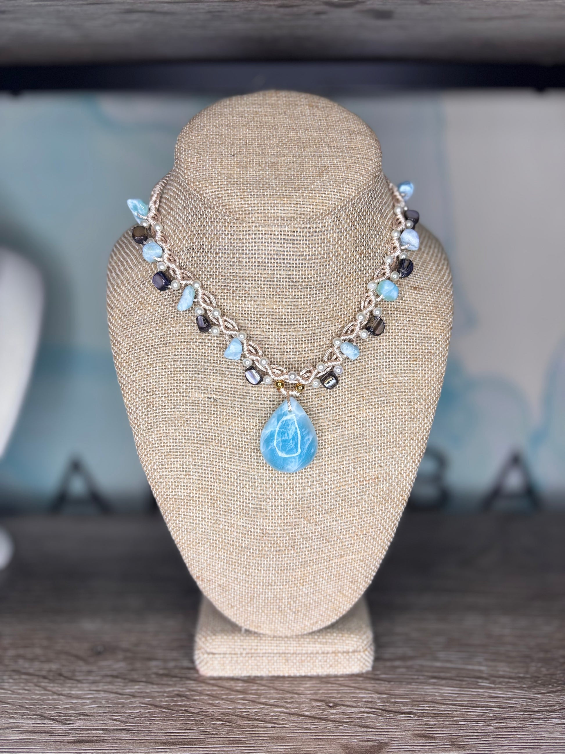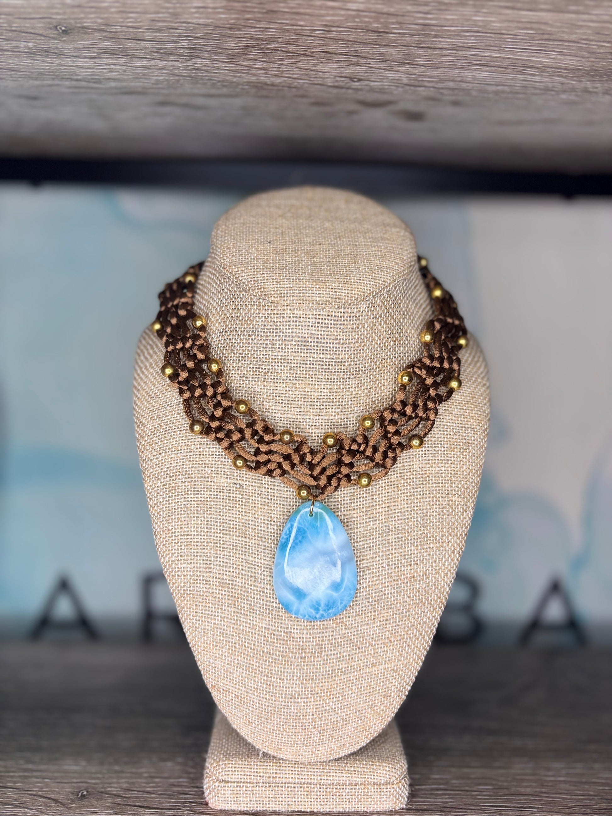 Beautiful handmade necklaces with amber and larimar details in the highest quality stainless steel