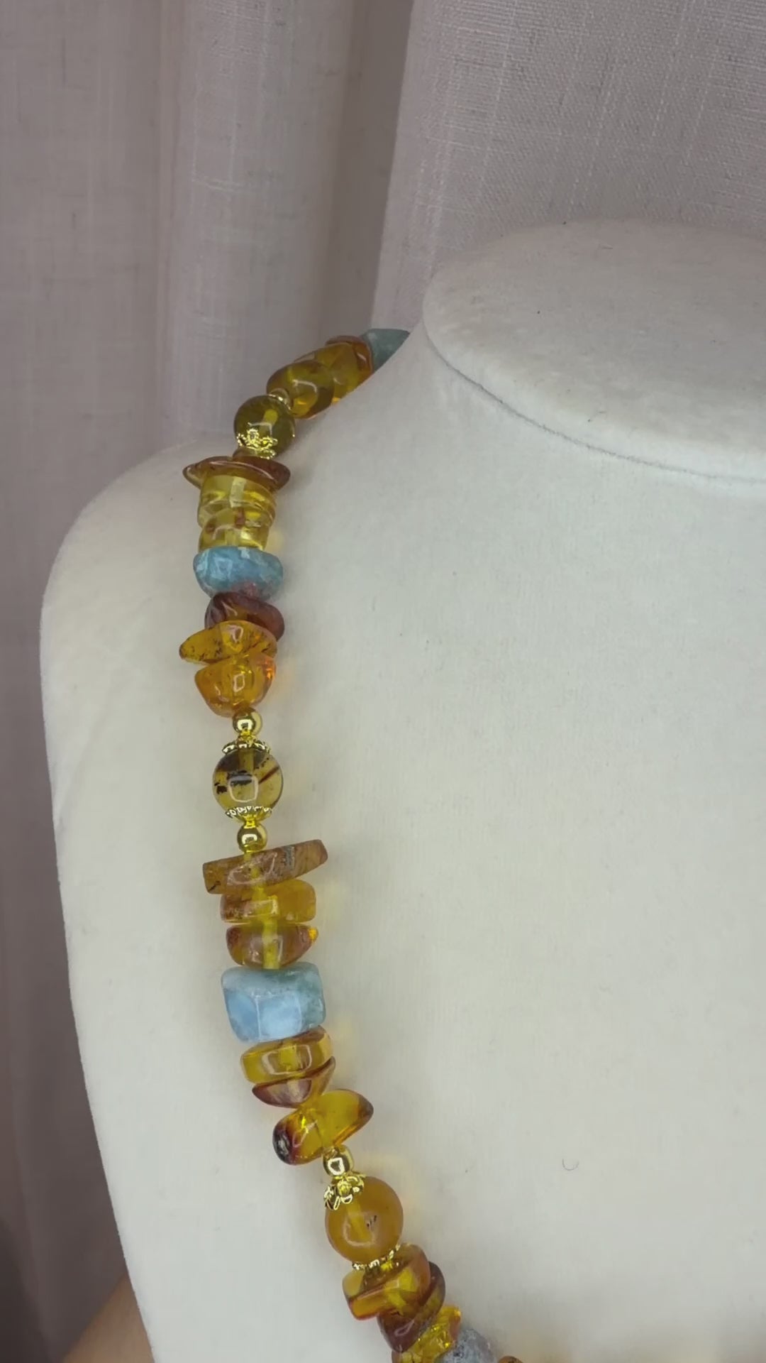 Hermoso choker hecho a mano con ambar y larimar, detalles y cierres enchapados en oro 18k š§”š©µš§”š©µ